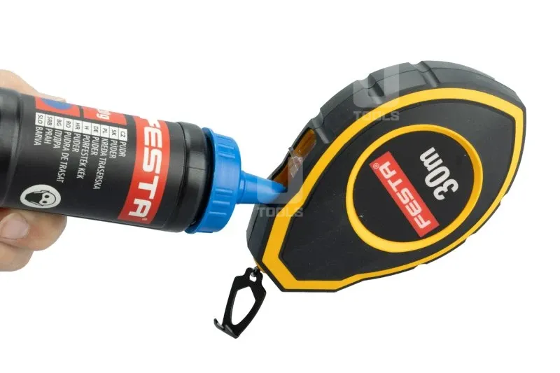 - dĺžka šňúrky je 30 m, prevodový mechanizmus navíjania umožňuje 6 x rychlejší návin / prefarbenie než bežné značkovače