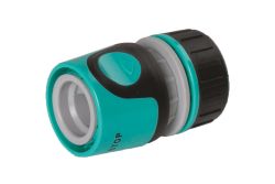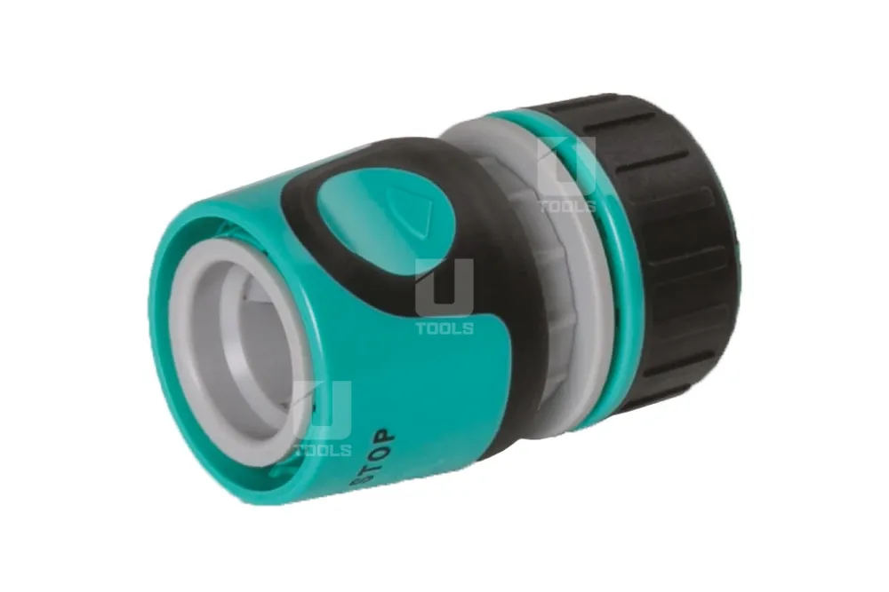 - Vnútorná konštrukcia STOP rýchlospojky umožňuje uzavrieť tlakom vody jej prúd pri prepájaní - výmene pištole, postrekovača atď.