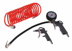 - Kompresorová sada pozostáva z nafukovacej pištole s manometrom - pre ľahké plnenie stlačeným vzduchom (napr. pneumatík automobilov, bicyklov a pod.),