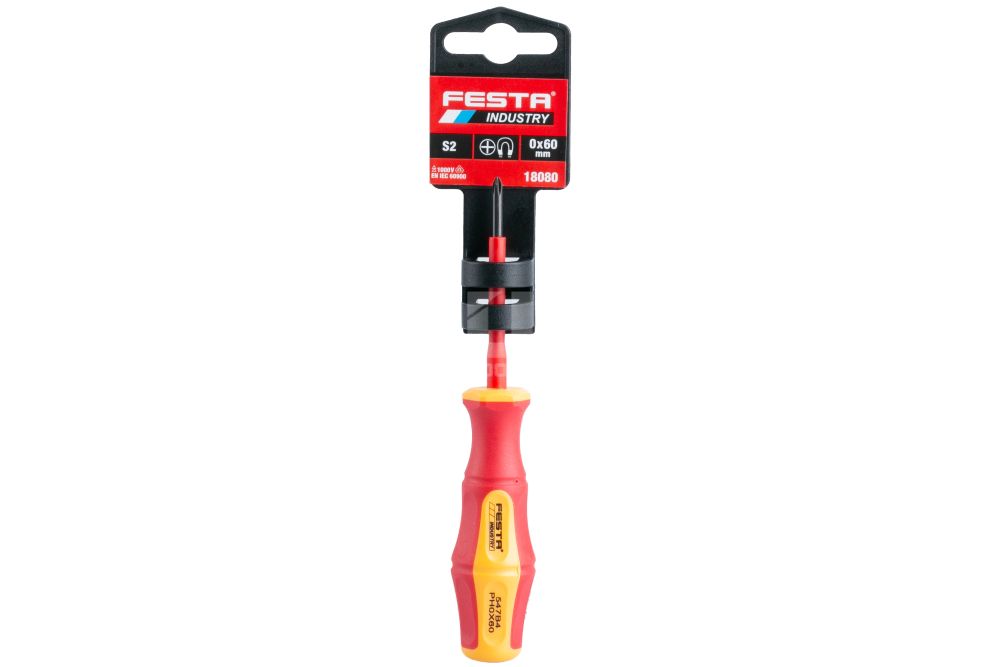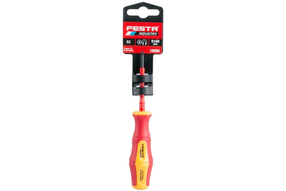 - Šroubovák FESTA INDUSTRY má certifikáciu elektro VDE 1000 V, EN IEC 60900:2018,