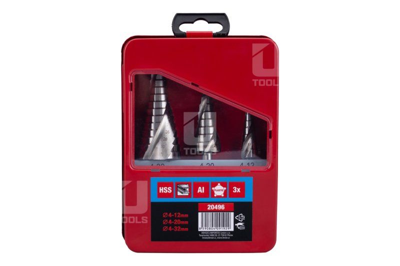 Stupňovité vrtáky HSS, 4–12, 4–20, 4–32 mm, 3 ks |