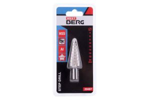 - stupňovitý vrták z kvalitnej HSS ocele DIN 1412C na vŕtanie zliatin a oceľových plátov do hrúbky 4 mm, plastu a dreva