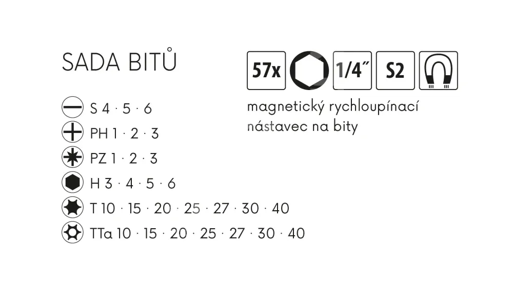 - súprava bitov z kvalitnej nástrojovej ocele S2