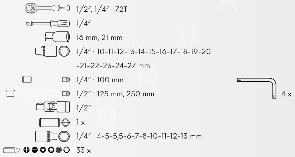 - Súprava náradia CrV 1/4"+1/2" (73ks)