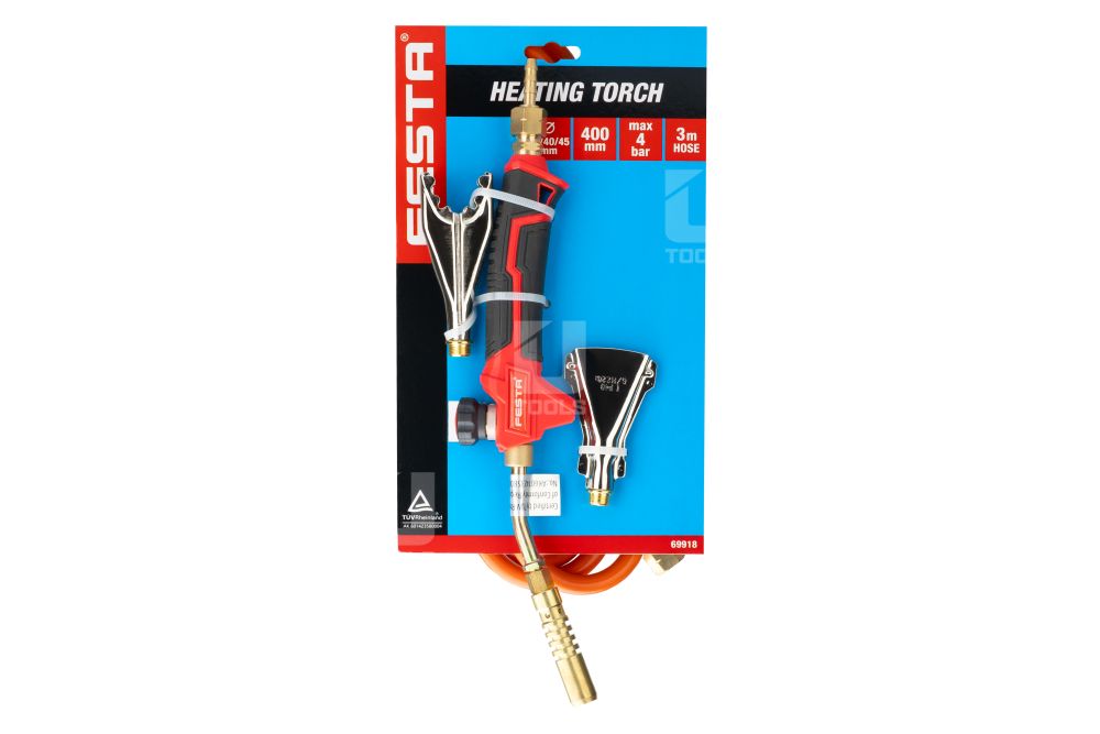 Súčasťou balenia sú opaľovacie aj spájkovacie nástavce, vďaka čomu je horák pripravený na okamžité použitie. Certifikovaná 3-metrová hadica zaisťuje bezpečné pripojenie k plynovému zdroju.