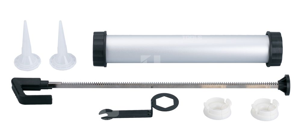 • súprava obsahuje rôzne nadstavce a nástroje, ktoré umožňujú efektívne a presné použitie pištole pri aplikácii tmelov