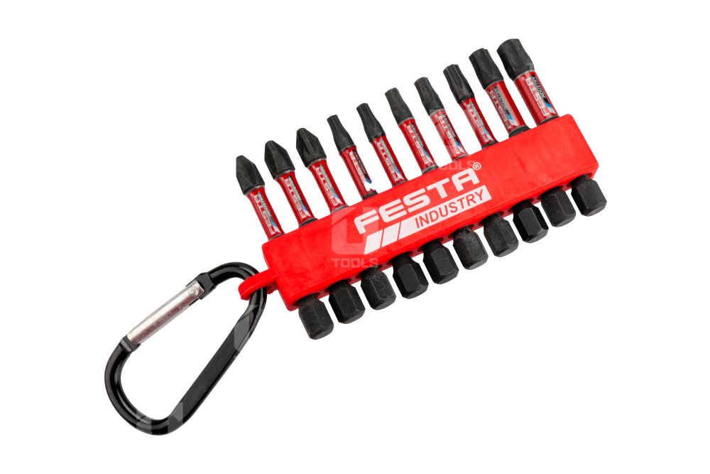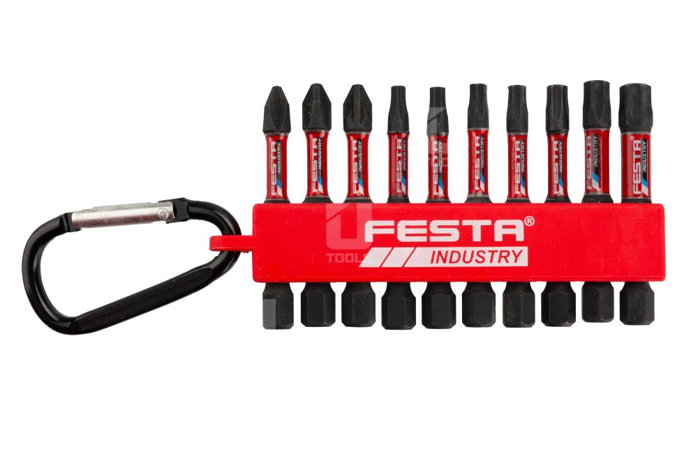 Torzné bity FESTA INDUSTRY sú vyrobené z kvalitnej S2 ocele, ktorá zaručuje odolnosť a dlhú životnosť