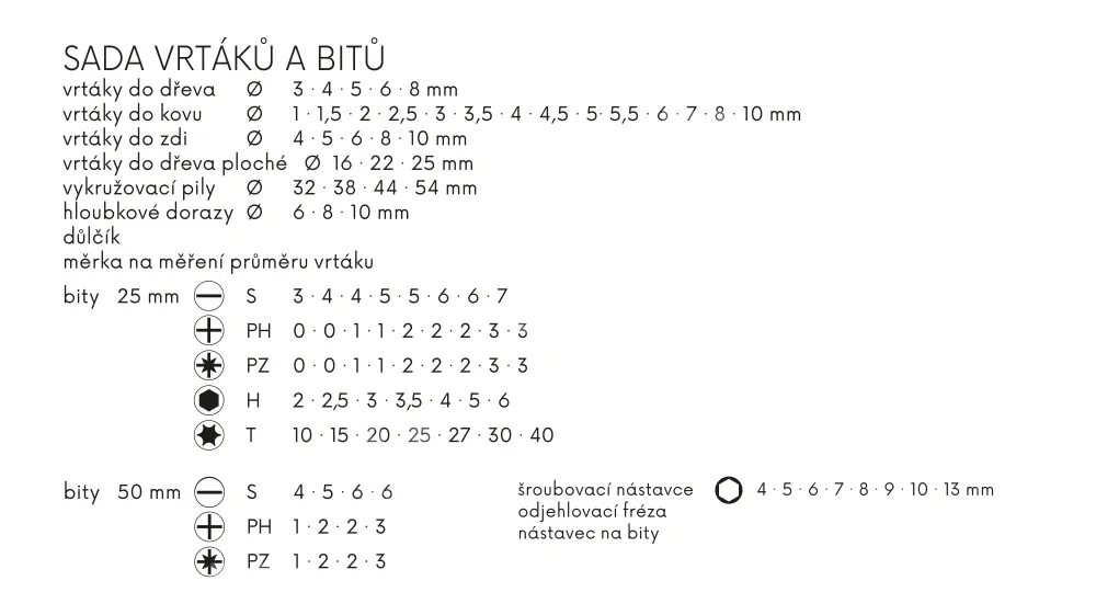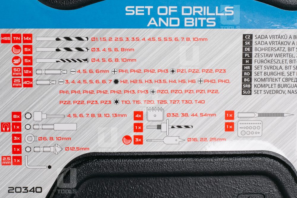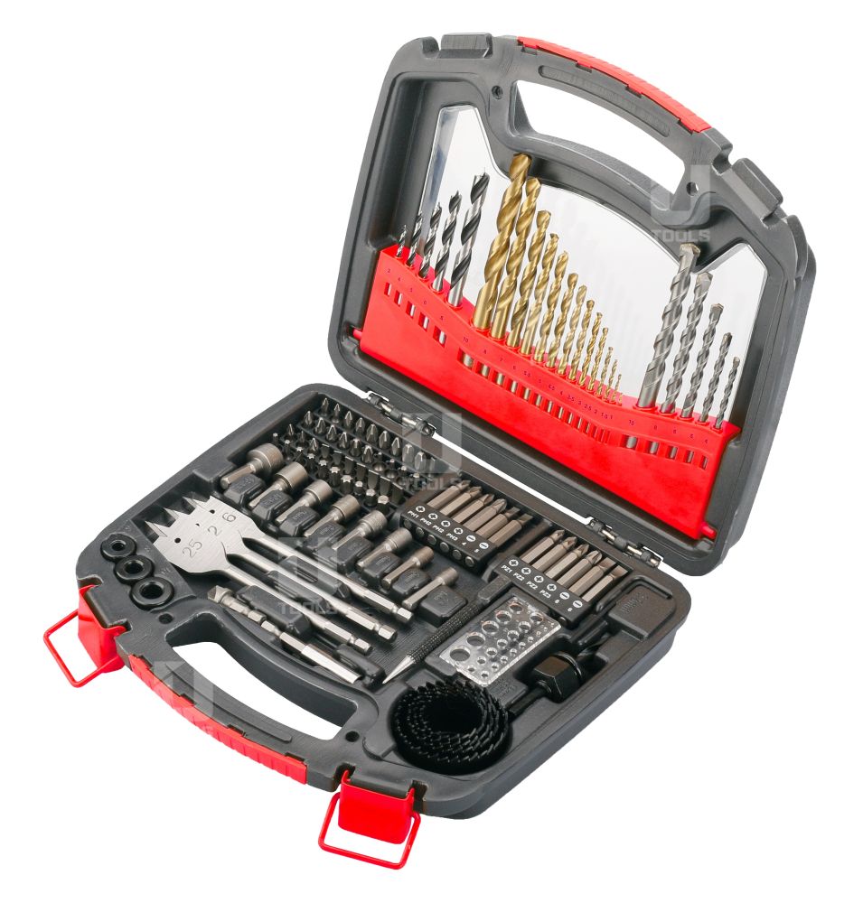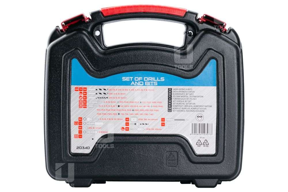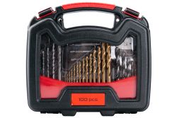 - praktická univerzálna súprava vrtákov, bitov, adaptérov a vykružovákov - 100ks
