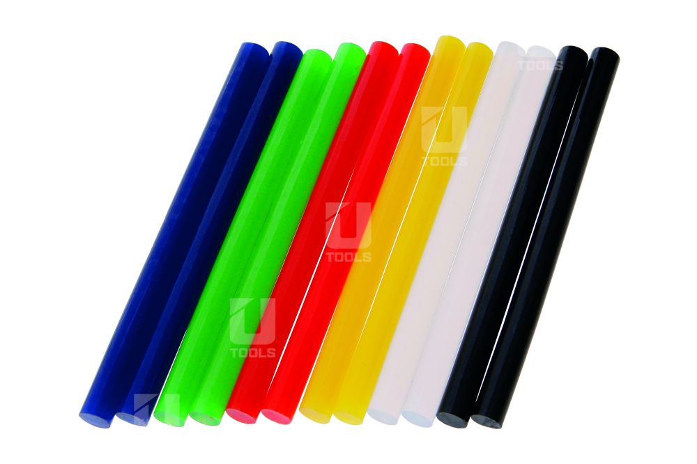 - Farebné tavné tyčinky pre rýchle a jednoduché montáže, lepenie za tepla a opravy rôznych materiálov (PVC, plastov, dreva, korku, kovov, skla, textílií atď.).