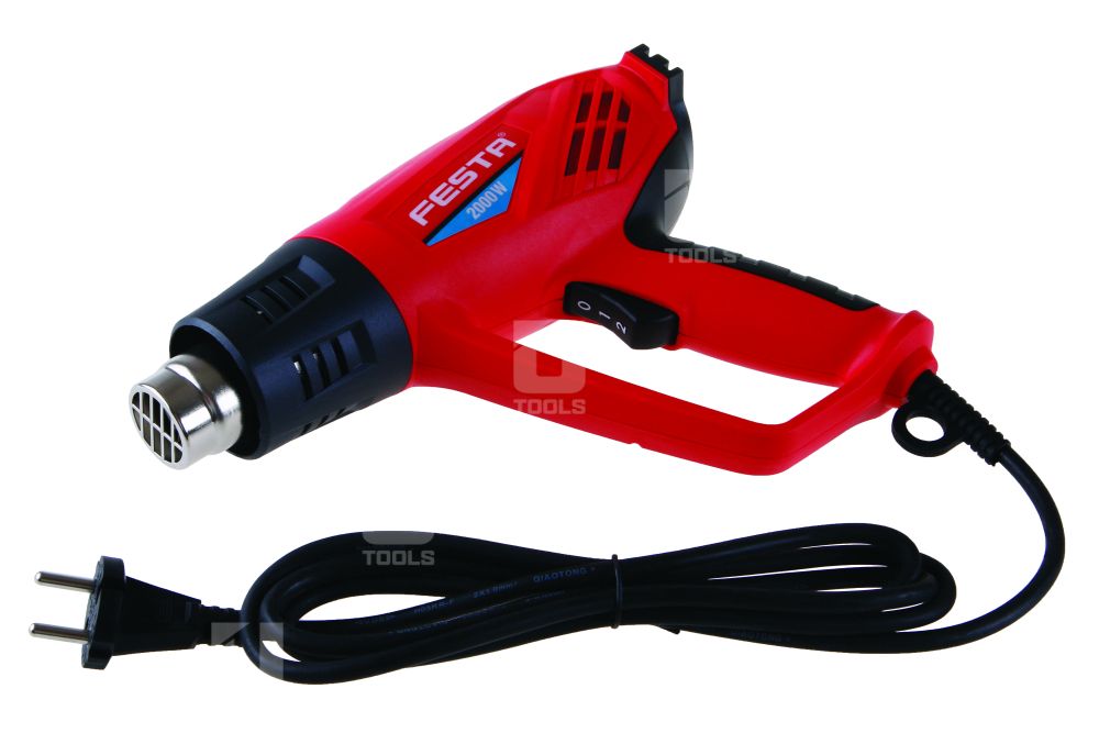 - Výkonná horúcovzdušná pištoľ s reguláciou teploty, príkon 2000 W, napätie/frekvencia 230/50Hz, poloha spínača 0 - I (350°C) - II (600°C), vhodná na odstraňovanie starých náterov, vosku, tvarovanie a zváranie plastov, sušenie, odmrazovanie, dezinfekciu.