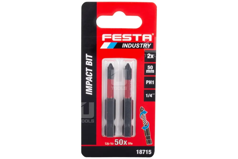 Torzné bity FESTA INDUSTRY sú vyrobené z kvalitnej S2 ocele, ktorá zaručuje odolnosť a dlhú životnosť