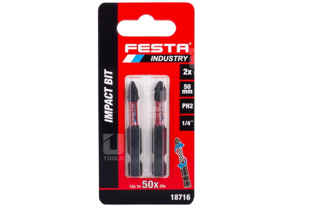 Torzné bity FESTA INDUSTRY sú vyrobené z kvalitnej S2 ocele, ktorá zaručuje odolnosť a dlhú životnosť