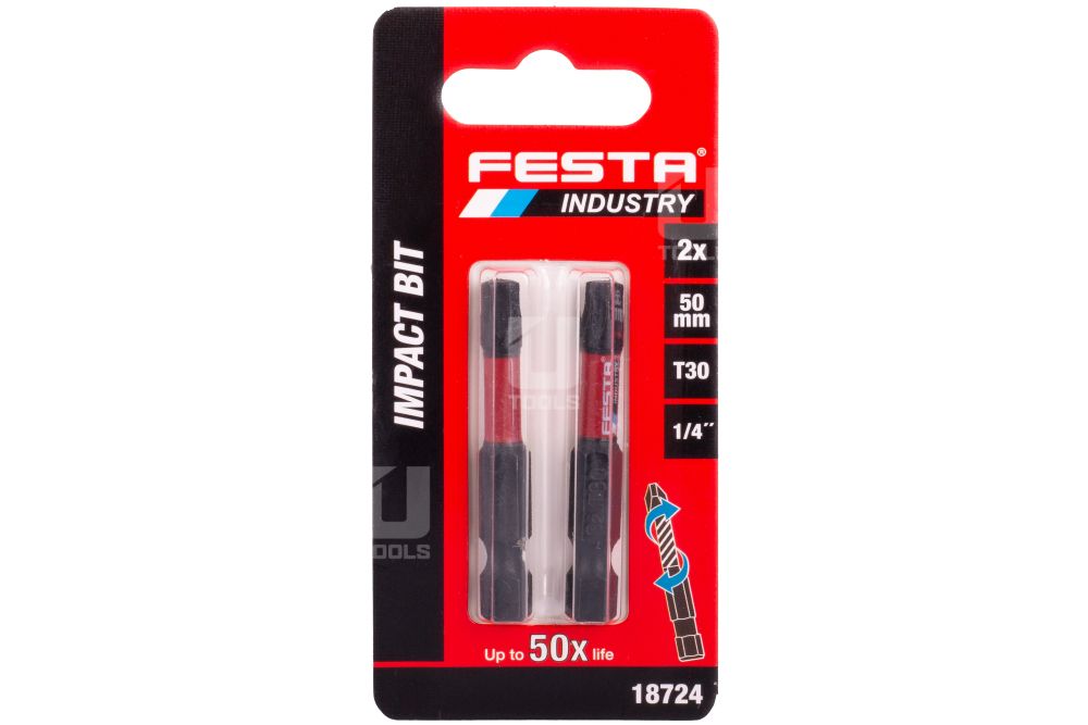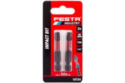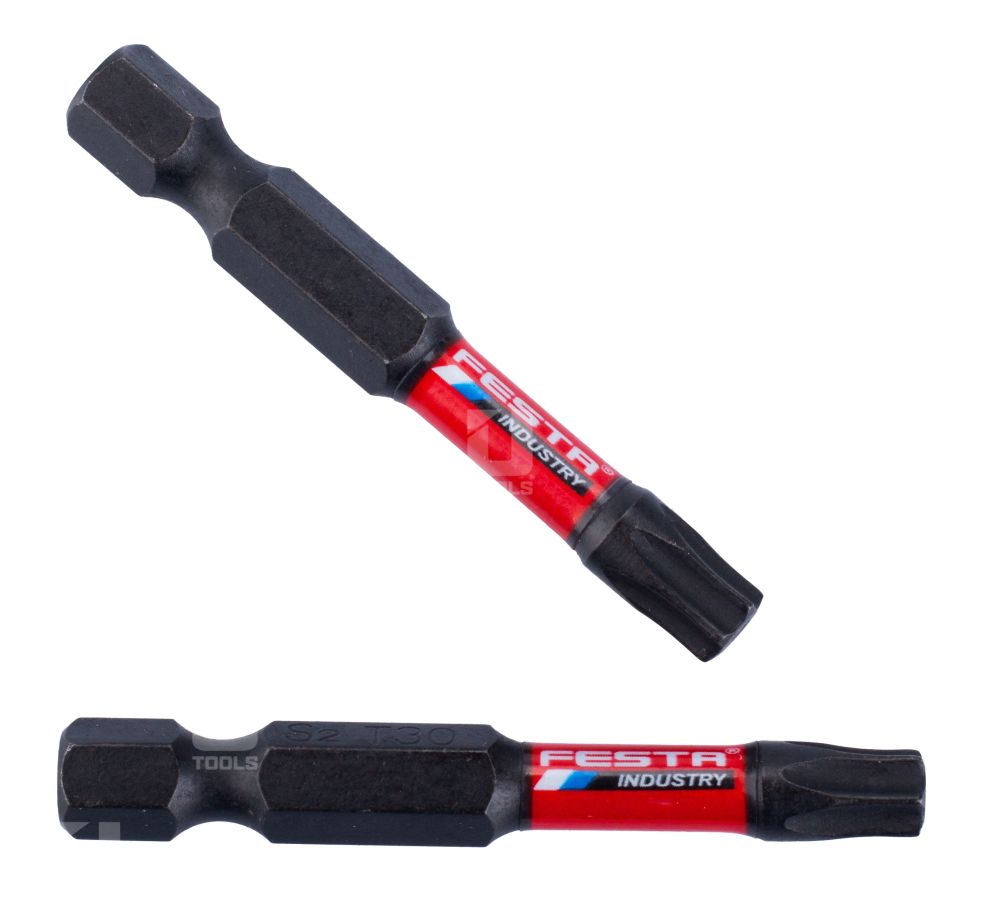 Torzné bity FESTA INDUSTRY sú vyrobené z kvalitnej S2 ocele, ktorá zaručuje odolnosť a dlhú životnosť