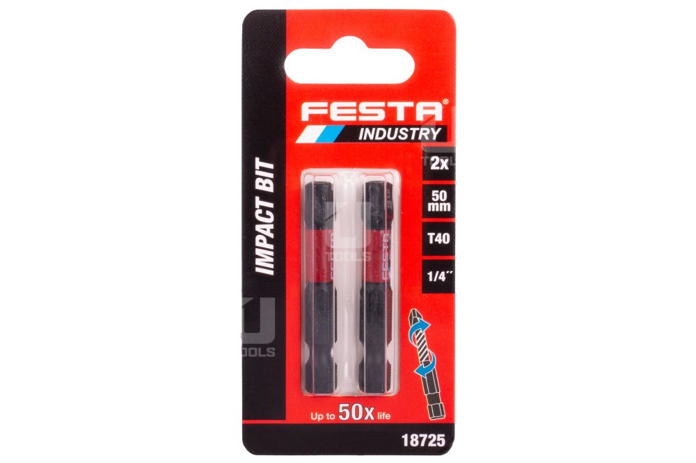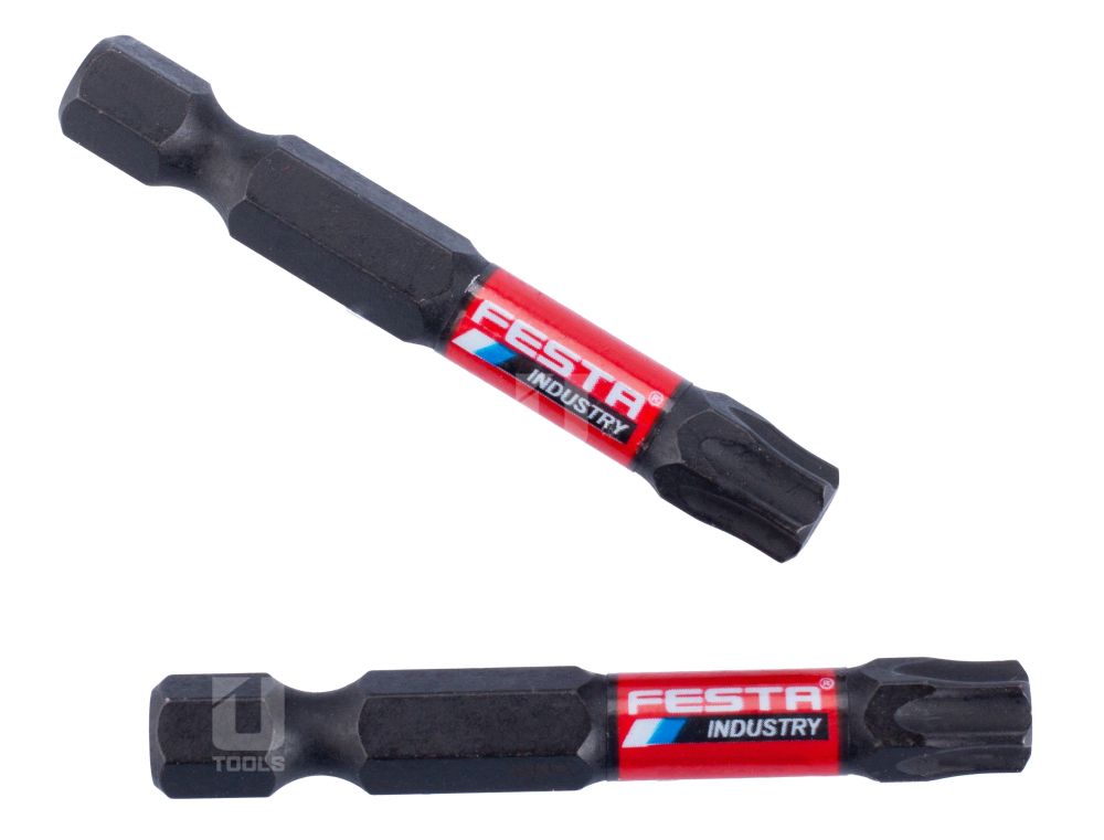 Torzné bity FESTA INDUSTRY sú vyrobené z kvalitnej S2 ocele, ktorá zaručuje odolnosť a dlhú životnosť
