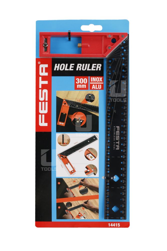 - stupnica a špeciálne otvory - indikované uhly pre široký rozsah použitia, meranie, značenie a prácu s drevom, kovmi, plastmi atď.