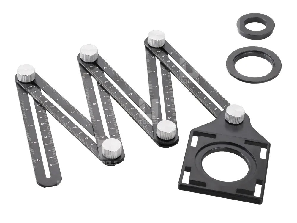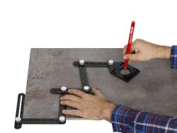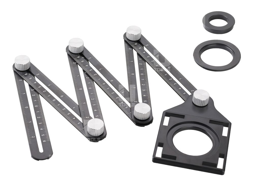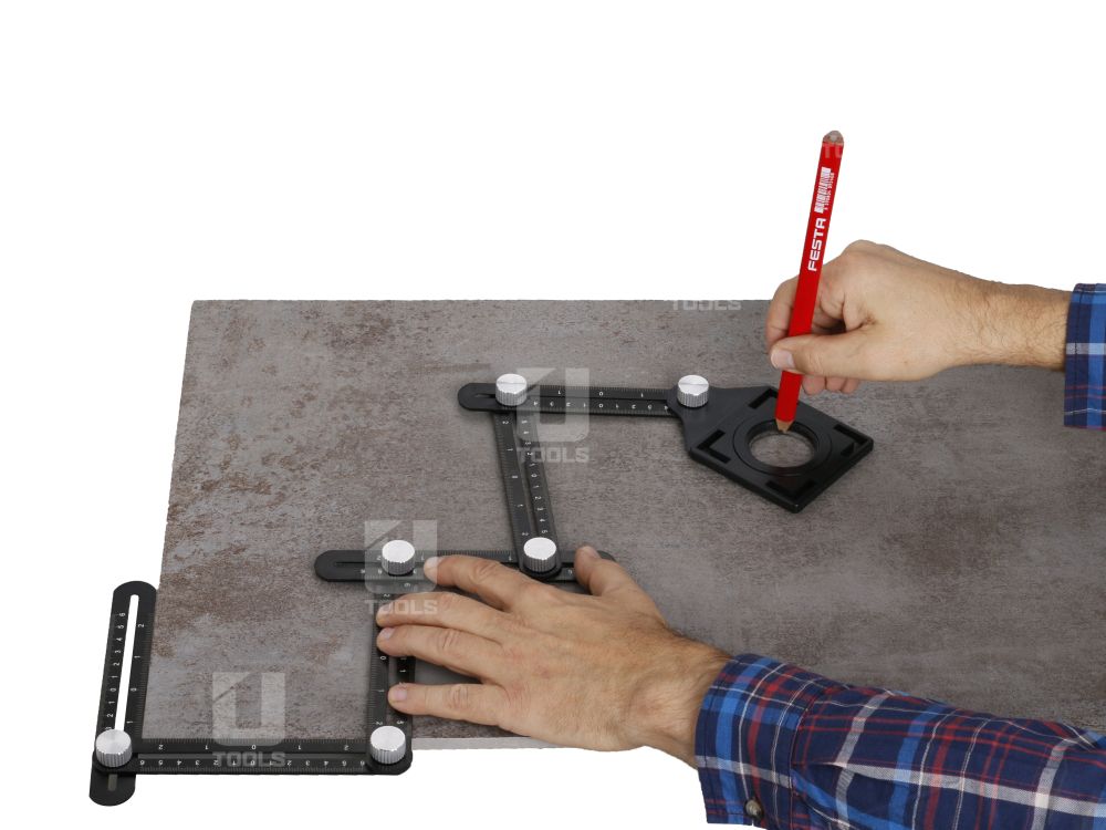 - viacúčelové skladacie pravítko - šablóna na značenie, prenos a tvorbu špeciálnych tvarov, uhlov alebo otvorov pre obkladačov, podlahárov a ďalšie profesie nielen v stavebníctve