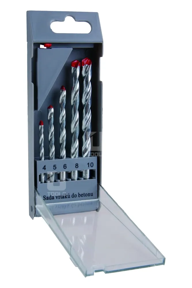 - sada najčastejšie používaných priemerov vrtákov do muriva 4, 5, 6, 8, 10 mm s valcovou stopkou