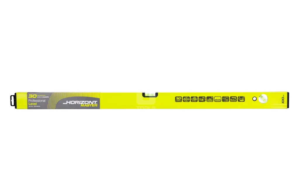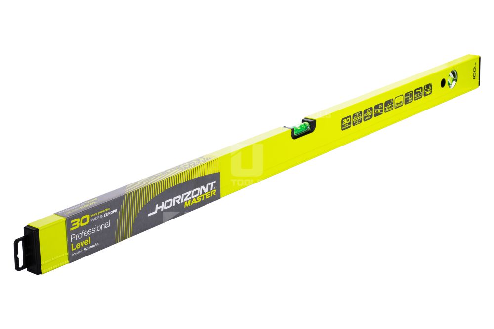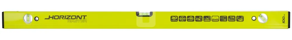 Vodováha HORIZONT MASTER ponúka presnosť 0,3 mm/m (0,017°), čím nastavuje vysoký štandard pre presné meranie na stavbách, pri montážach aj v technickej výrobe.