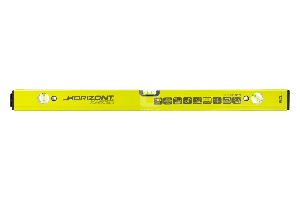 Vodováha HORIZONT MASTER ponúka presnosť 0,3 mm/m (0,017°), čím nastavuje vysoký štandard pre presné meranie na stavbách, pri montážach aj v technickej výrobe.