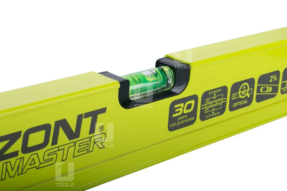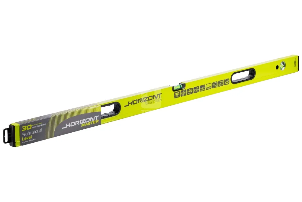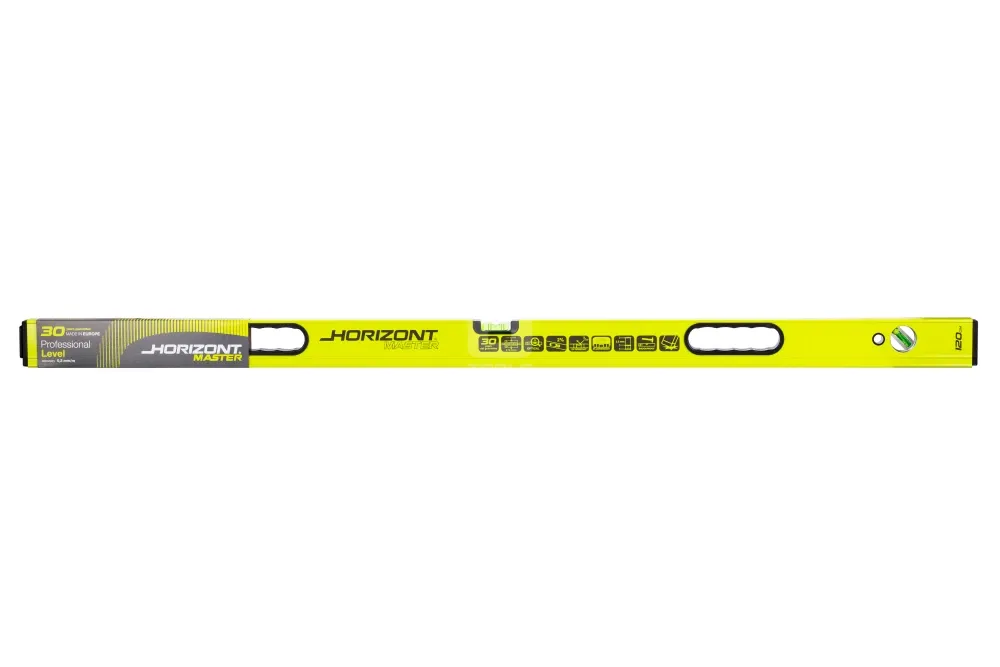 Vodováha HORIZONT MASTER ponúka presnosť 0,3 mm/m (0,017°), čím nastavuje vysoký štandard pre presné meranie na stavbách, pri montážach aj v technickej výrobe.