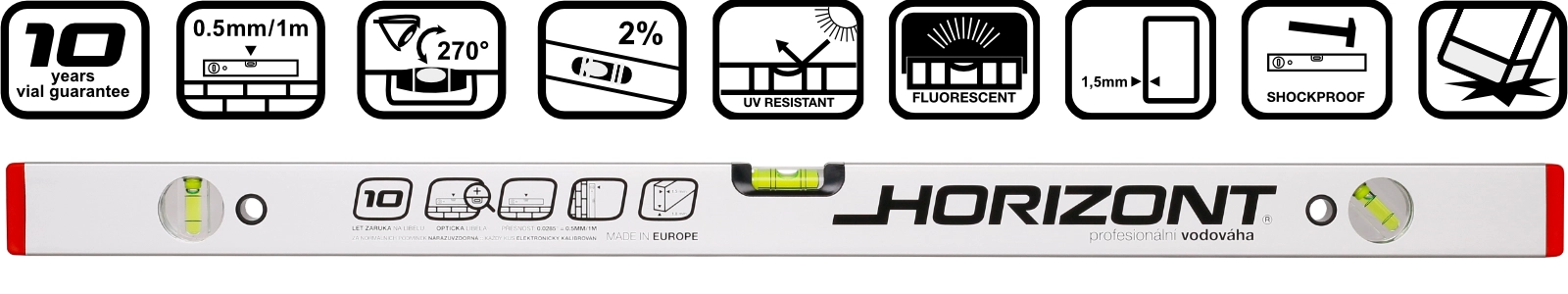 Vodováha s tromi libelami, odolná voči prevádzkovým nárazom