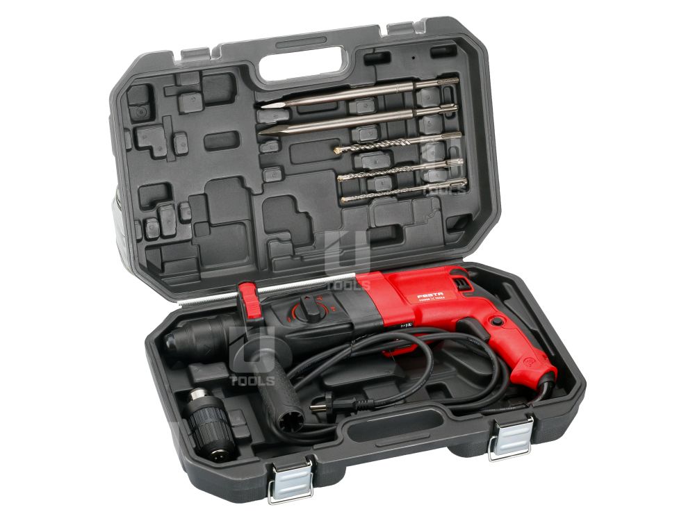 | Obsah balenia | plochý sekáč, špicatý sekáč, vrtáky 3 ks, náhradné uhlíky, skľučovadlo 2 – 13 mm, hĺbkový doraz, vŕtacie kladivo, pomocná rukoväť |