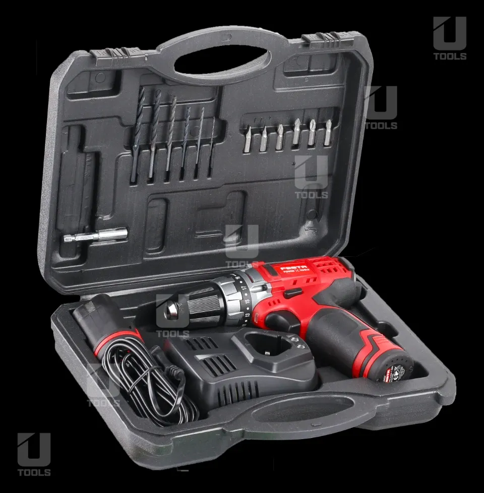 - Vŕtačka AKU 12V, batéria 2x1,5Ah, nabíjačka, kufor, príslušenstvo
