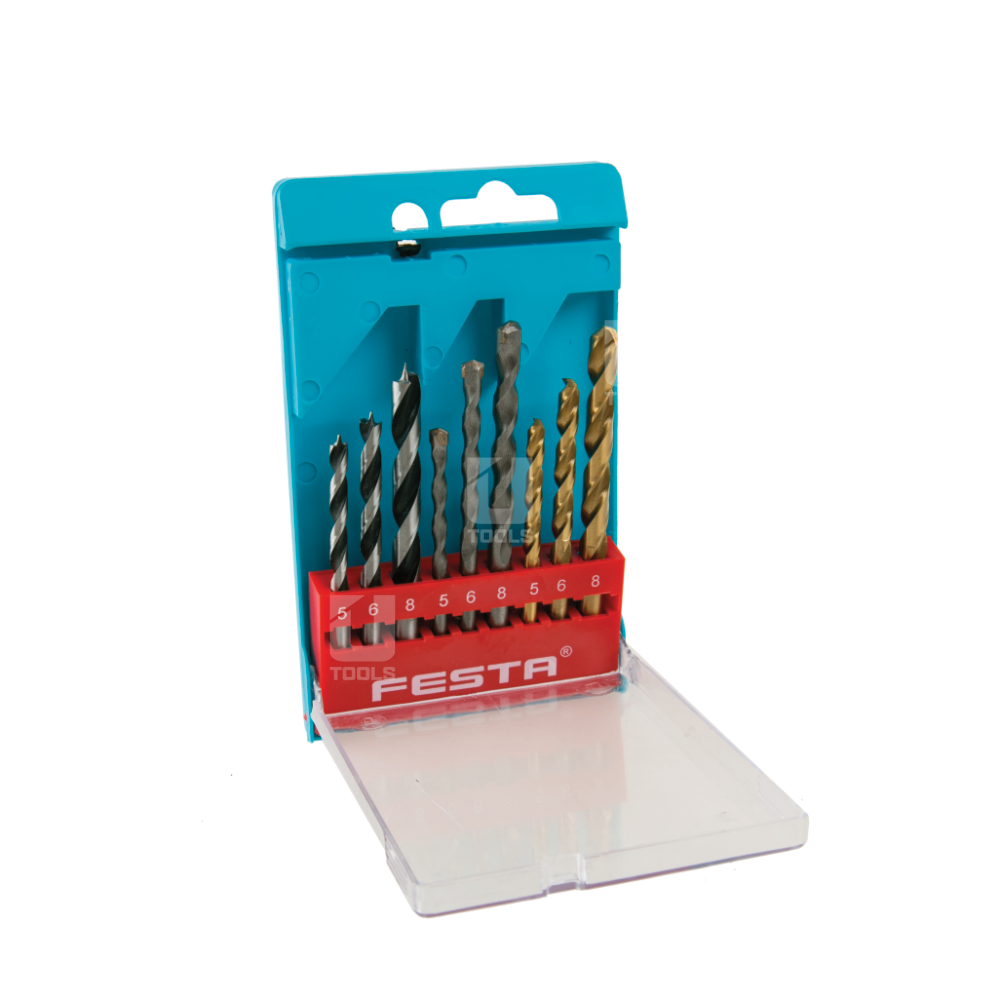 - Sada FESTA vrtákov do dreva, zdiva a kovov s priemermi 5, 6 a 8 mm s valcovou stopkou.