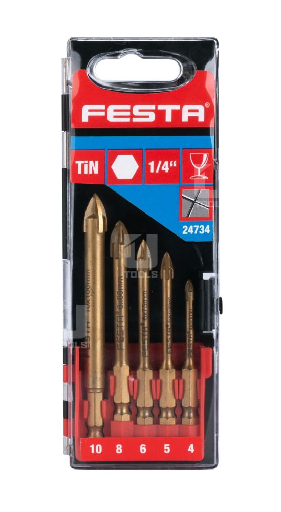 - sada špeciálnych vrtákov pre presné a rýchle vŕtanie do skla, keramiky, tvrdej dlažby a obkladov a iných extrémne tvrdých materiálov nielen v stavebníctve