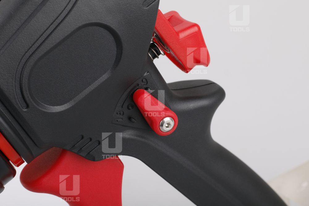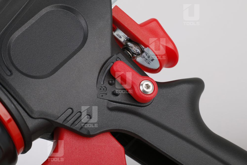 • nastavenie prevodu sily a tým aj množstva vytlačeného tesnenia 9:1 alebo 18:1 na jedno stlačenie