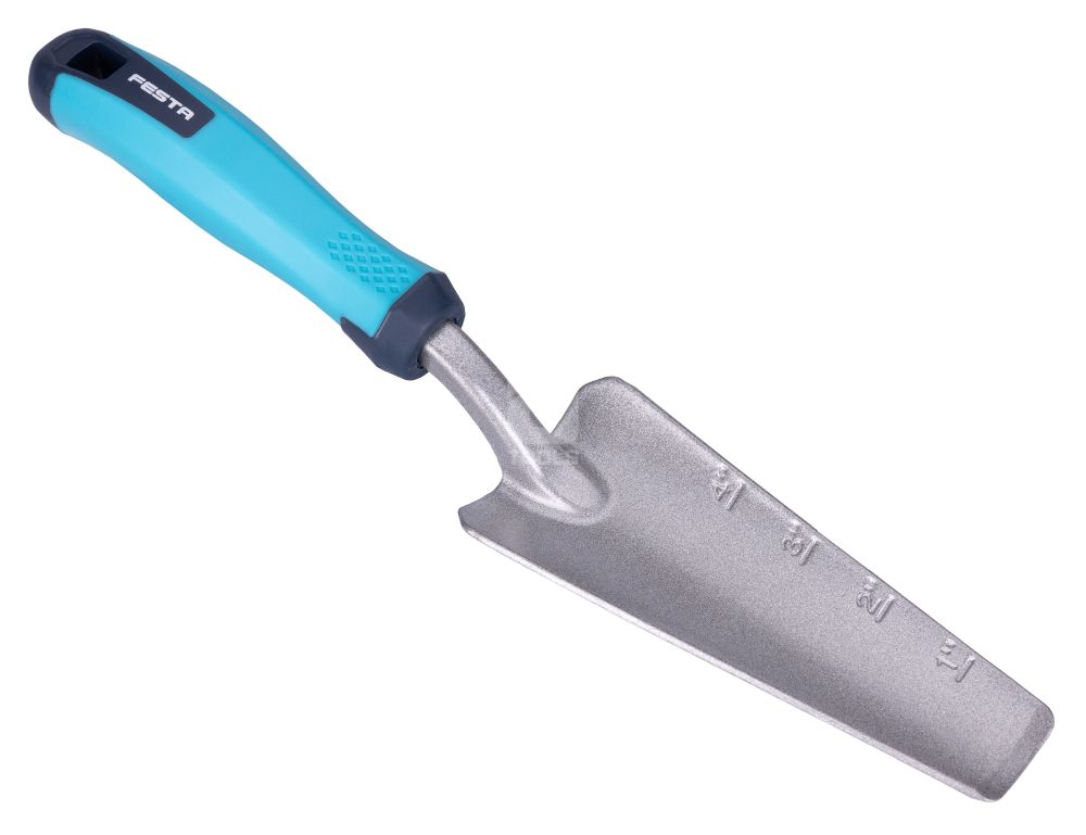 Na čepeli sa nachádza metrická aj palcová stupnica, ktorá uľahčuje presné sadenie rastlín a kontrolu hĺbky výsadby.
